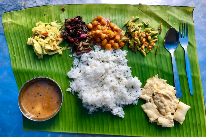 Cuando volví al hostal me puse ropa seca y me calenté un poquito: me cambió la vida 😂 en el cuarto me encontré con Marcia, una chica inglesa que estaba cosiendo unos pantalones y me preguntó si quería aprender, yo le dije que sí pero resulté siendo muy mala y casi les hago un hueco más grande 😅 como no había almorzado y tenía mucha hambre decidí cenar temprano y me comí un delicioso arroz indù encima de una hoja de plátano, una de las cosas más ricas que he comido en Malasia!