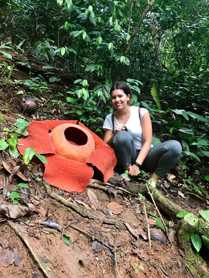 El día después me desperté bien temprano, desayuné y empezé la primera excursión del año. Un grupo de 4 chicos y yo habíamos alquilado un guía para que nos llevará a ver la flor más grande del mundo. Se trataba de caminar 4 horas y media en la selva, el día anterior había llovido entonces se pueden imaginar cómo estaba la ruta! Después de un par de horas de caminata empezè a sentir un fastidio en el tobillo, pero no le hice mucho caso hasta que no se volvió dolor y cuando miré para controlar que me pasaba vi que había una sanguijuela, ahora puedo decir que era la primera de muchas que en los días siguientes me mordieron pies brazos y piernas.